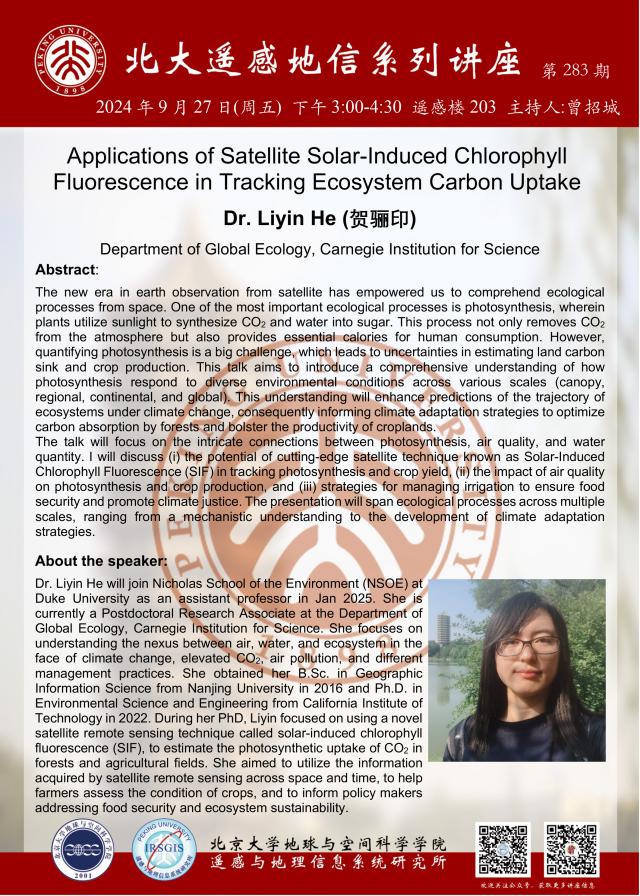 Peking University Remote Sensing and GIS Seminar Series No. 283