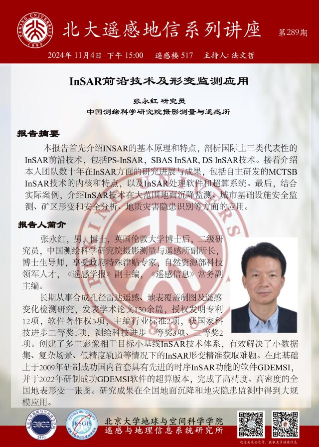 Peking University Remote Sensing and GIS Seminar Series No. 289